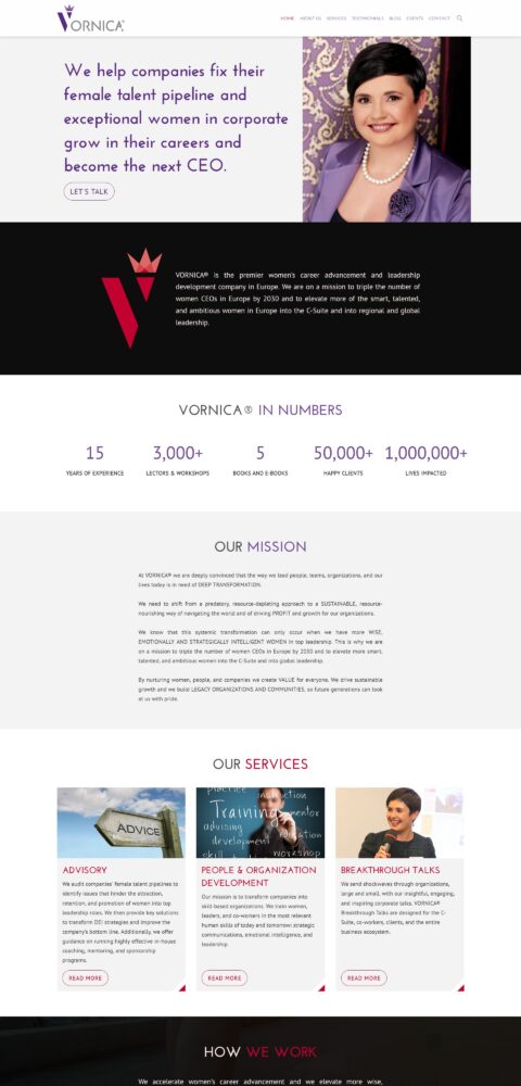 UX/UI design & development for Cristina Muntean, an entrepreneur and founder of of VORNICA®, executive coach and mentor, CEO whisperer, long-term client and a dear friend.